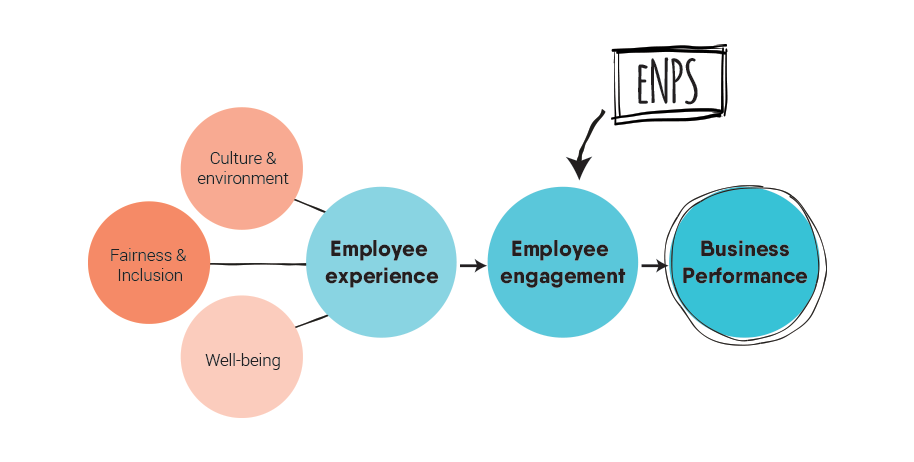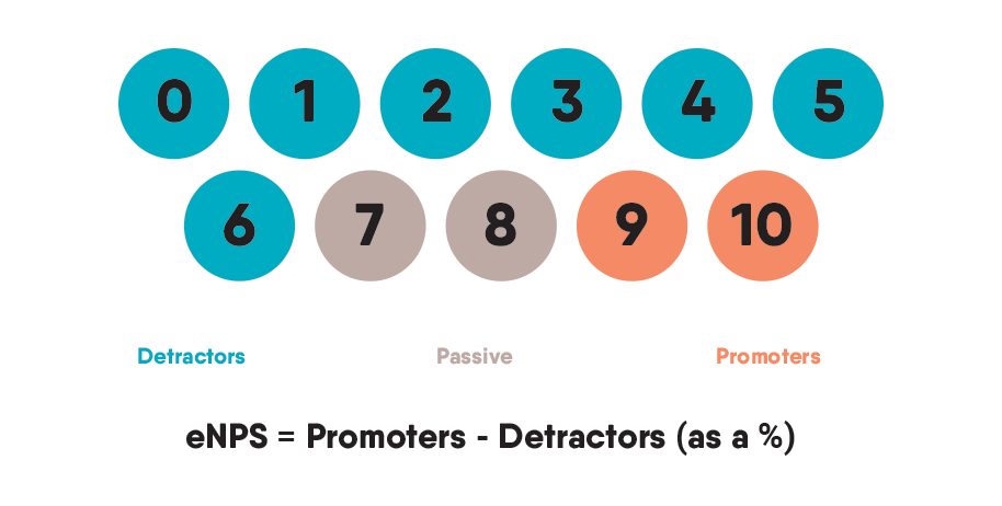 eNPS asks ‘How likely is it that you would recommend this company as a place to work?’ and uses the same scoring system as NPS. In some cases, eNPS also asks how likely they are to recommend a company’s products or services (as in NPS) although that’s not a universal practice.